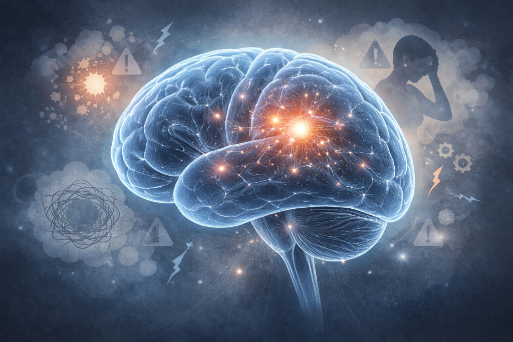 The nervous system prioritizes learning from threat. In evolutionary terms, it is adaptive to encode and respond to real danger. But in chronic anxiety, the brain’s threat‑learning circuits — involving structures like the amygdala — become over‑sensitive to uncertainty and potential social evaluation. Instead of integrating evidence that a non‑harmful event was safe, rumination reinforces the possibility of threat. The very act of repeatedly focusing on “what happened” trains the brain to treat ambiguous or harmless social situations as if they might have been threatening — a feedback loop that reinforces anxiety instead of dissolving it.